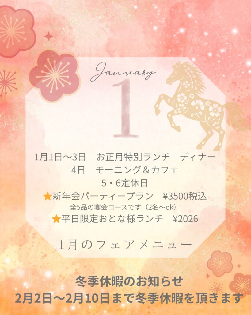 ランチ または ディナーのみの営業 詳しくはお電話にてご確認ください